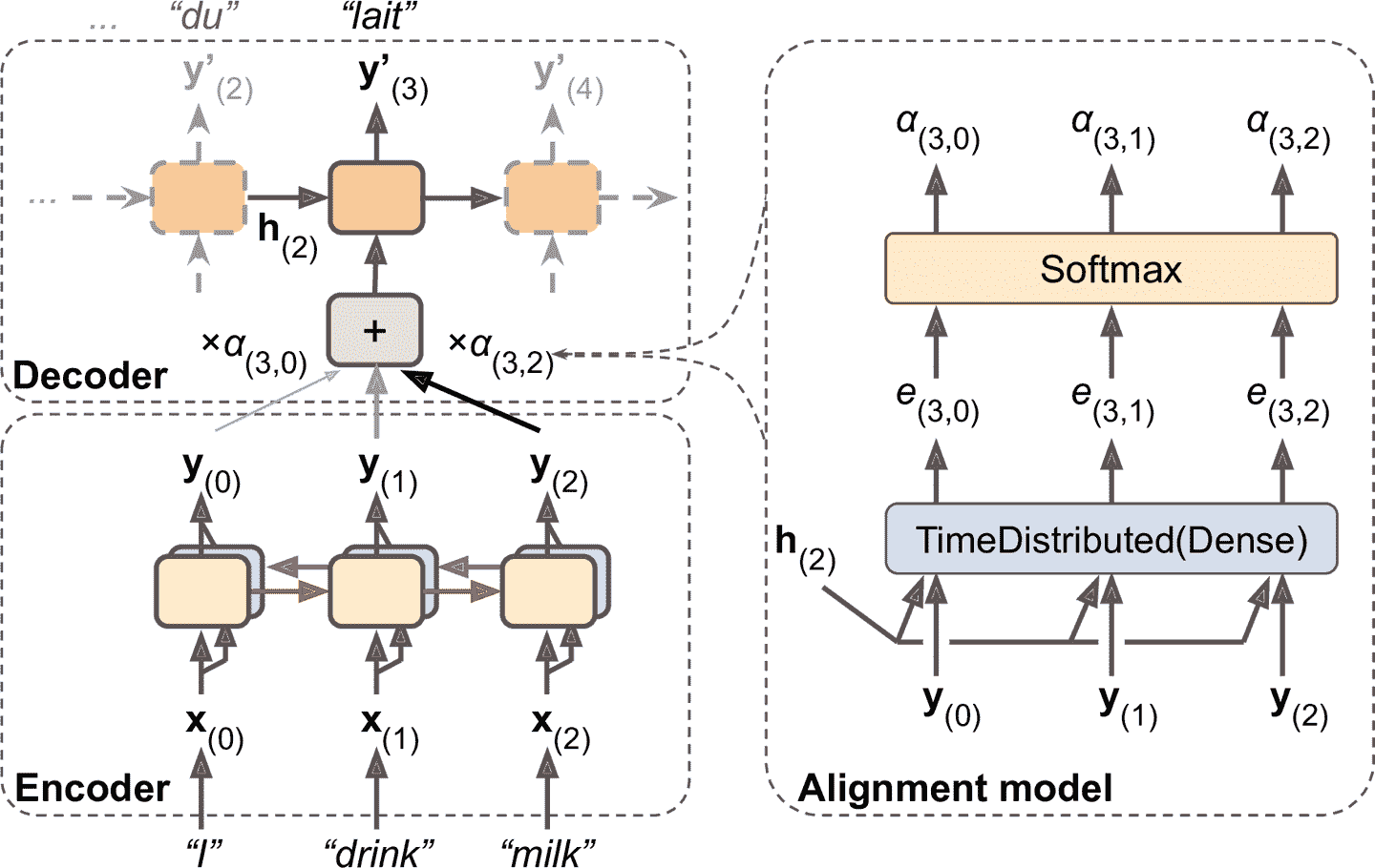 本章的第二部分,会介绍注意力机制。正如其名字,这是一种可以选择输入指定部分,模型在每个时间步都得聚焦的神经网络组件。首先,会介绍如何使用注意力机制提升基于 RNN 的编码器-解码器架构的性能,然后会完全摒弃 RNN,介绍只使用注意力的架构,被称为 Transformer(转换器)。最后,会介绍 2018、2019 两年 NLP 领域的进展,包括强大的语言模型,比如 GPT-2 和 Bert,两者都是基于 Transformer 的。