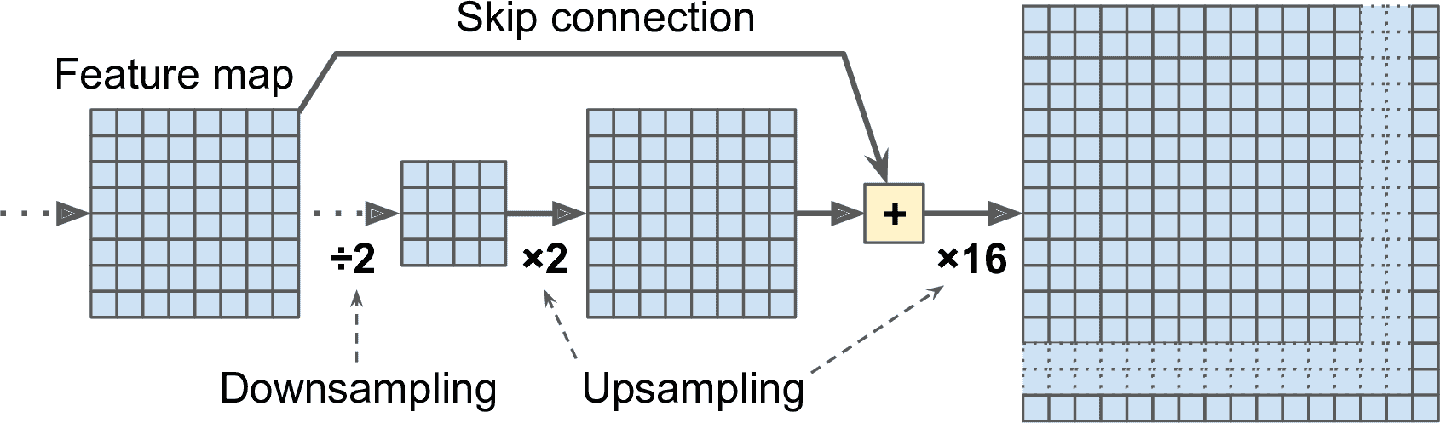 图 14-28 跳连接可以从低层恢复一些空间分辨率