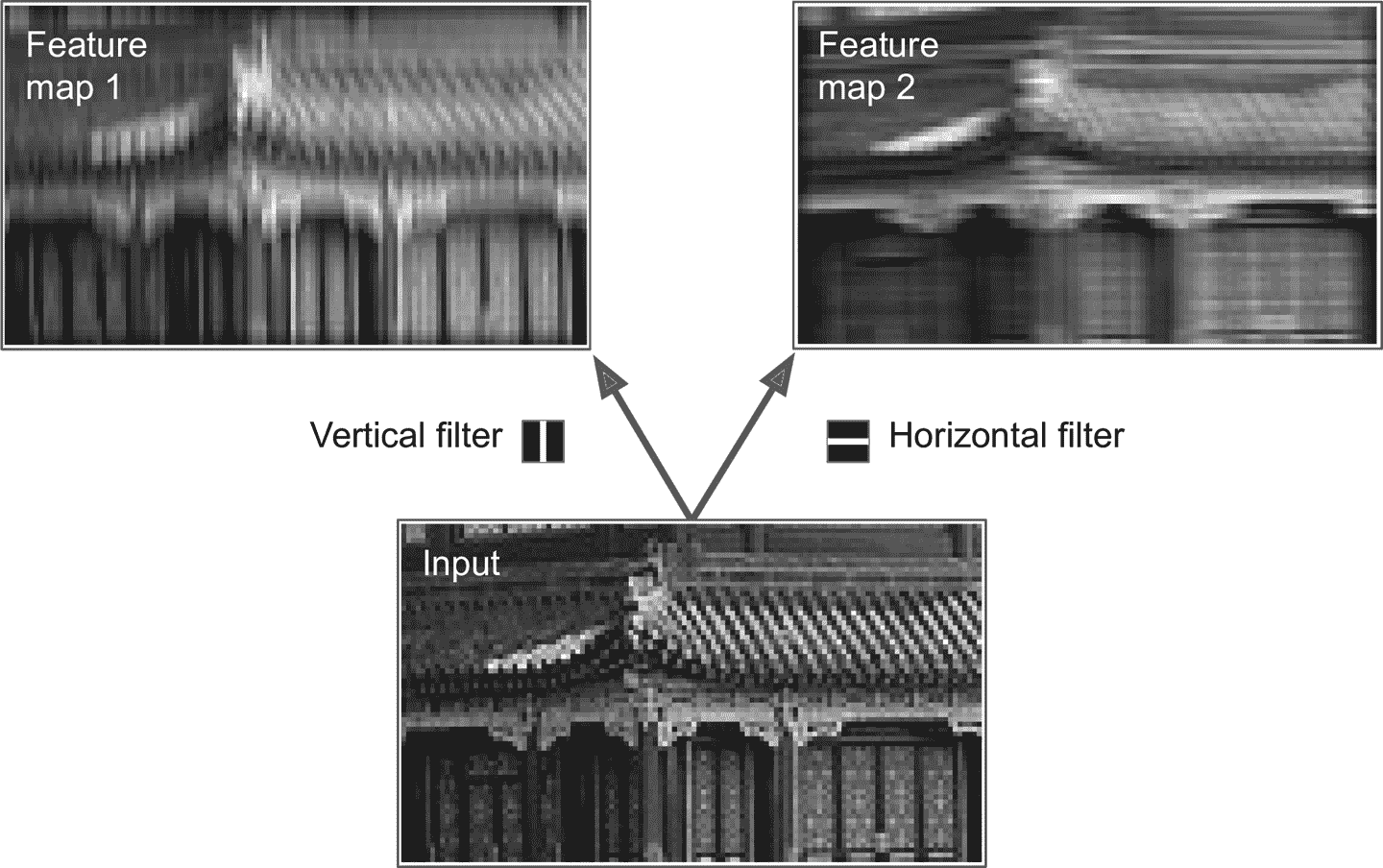 图 14-5 应用两个不同的过滤器,得到两张不同的特征映射